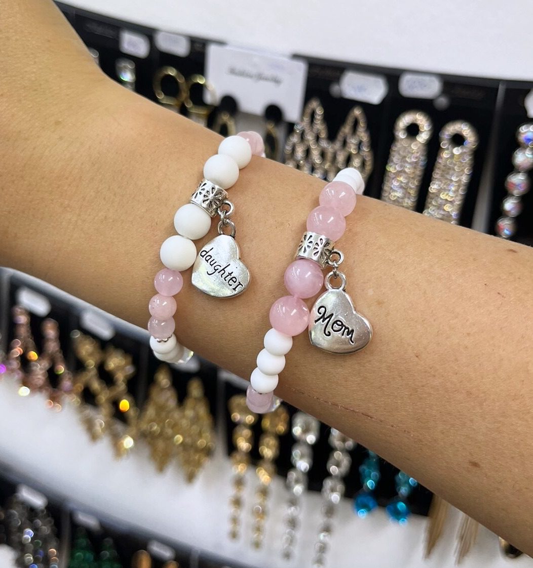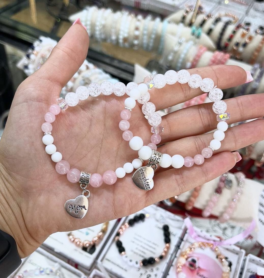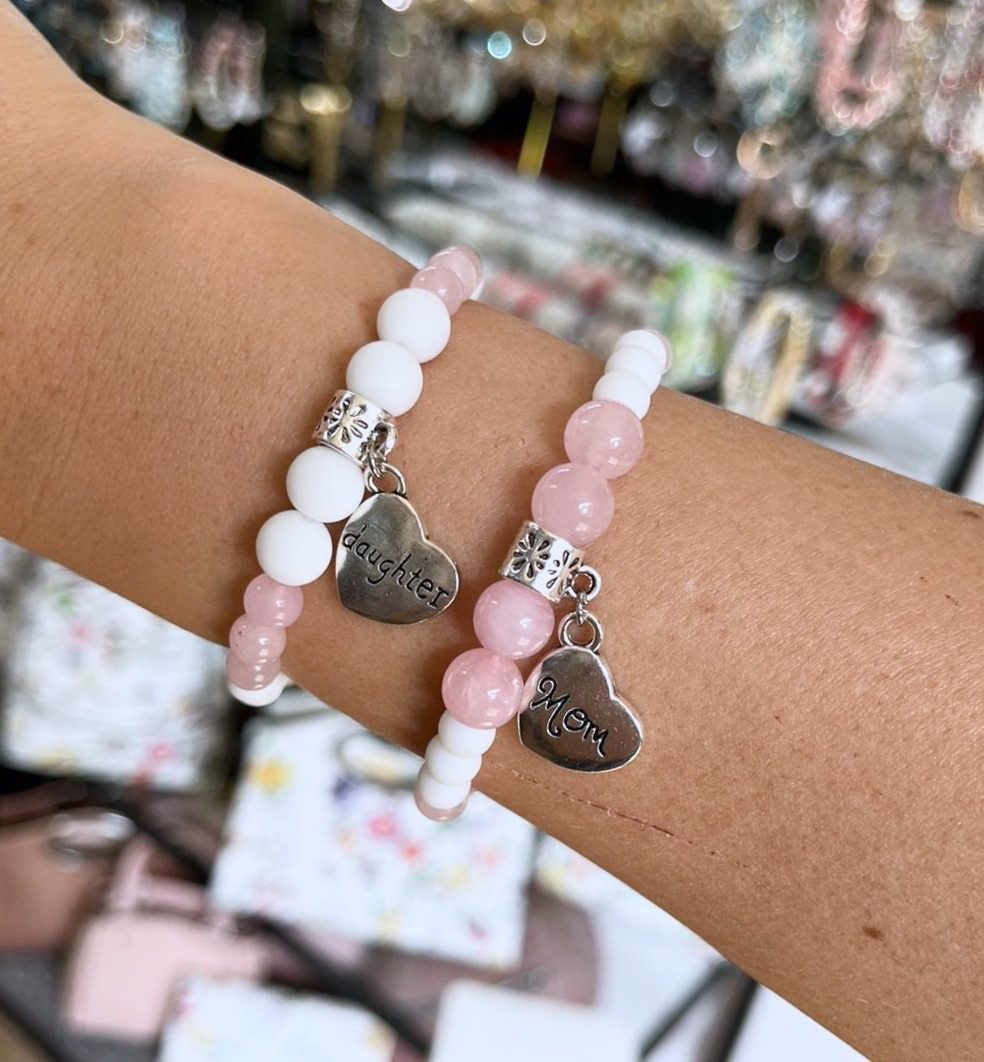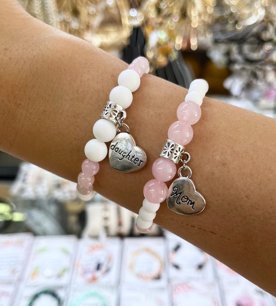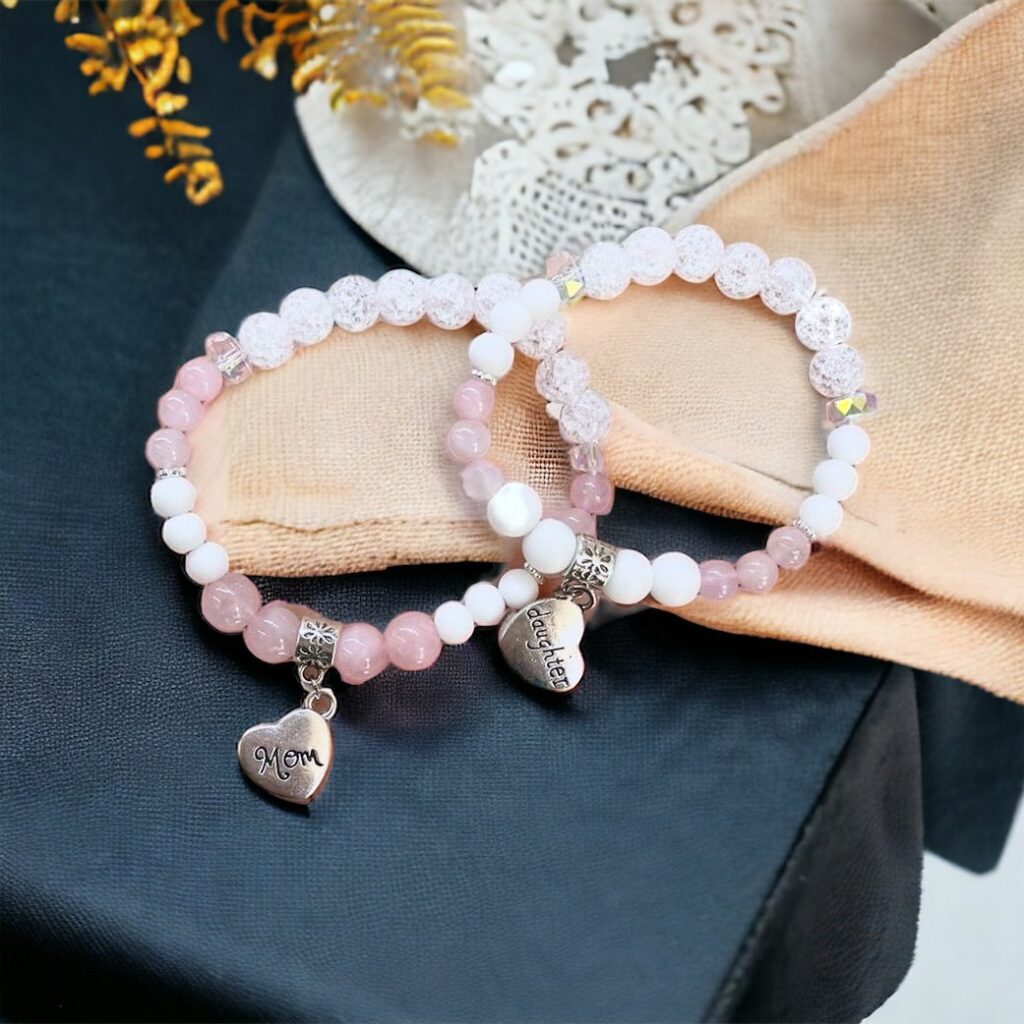 Anya-lánya tejkvarc-rózsakvarc páros karkötő páros ékszer