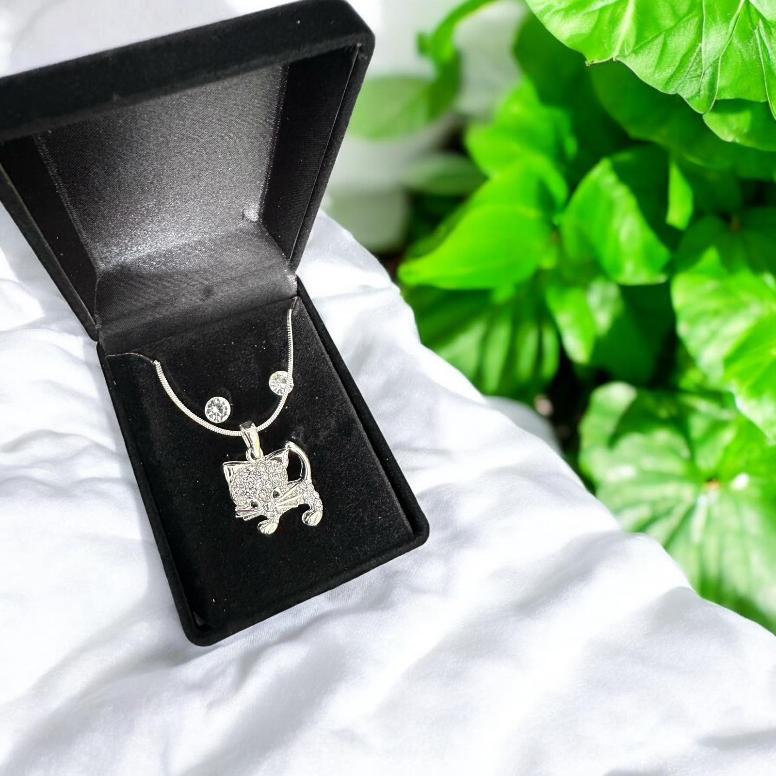Cica ezüst színű bizsu nyaklánc szett