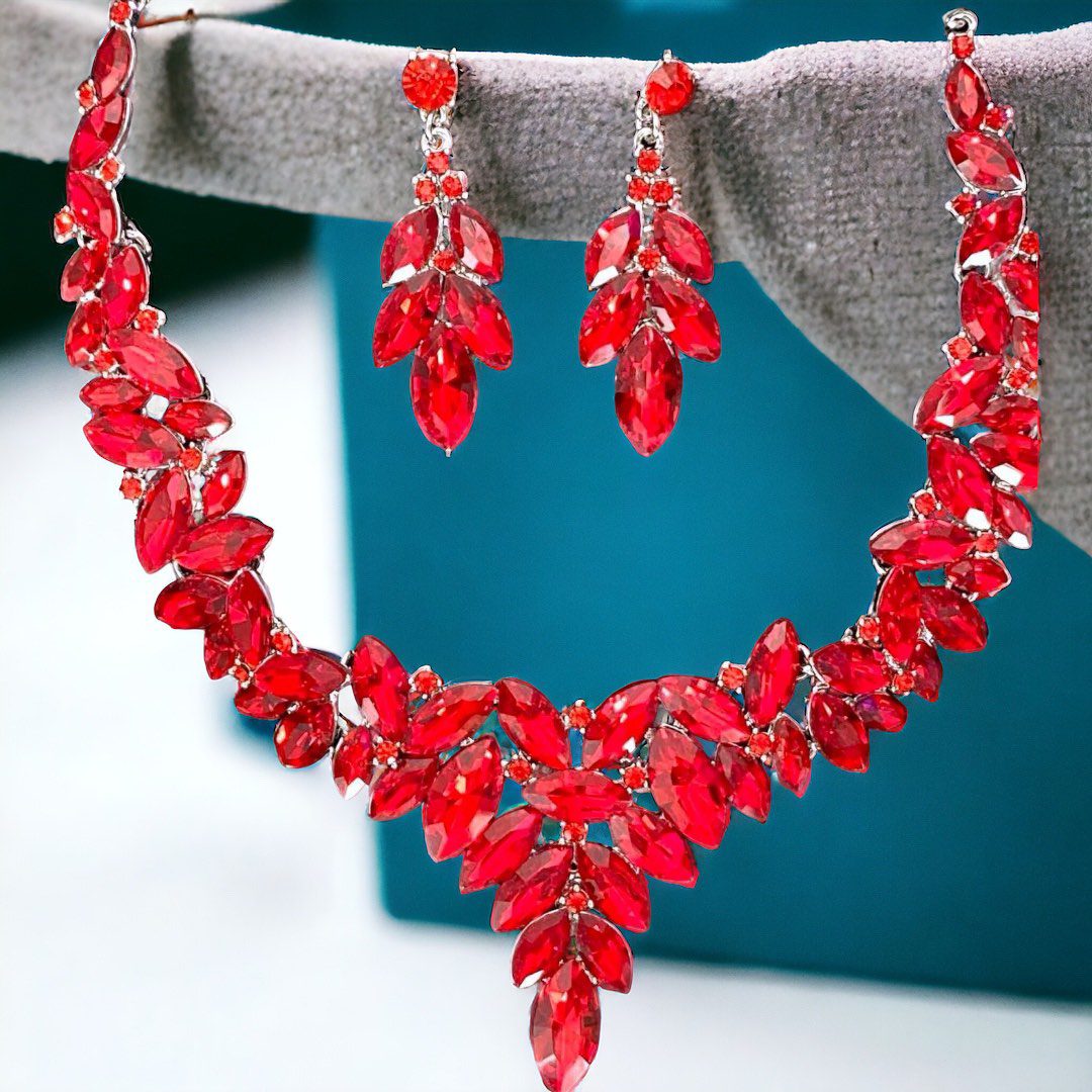 CINDERELLA piros színű gyönyörű bizsu alkalmi kristály nyaklánc szett