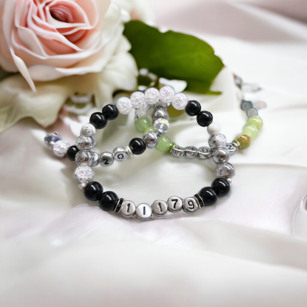 A Grabovoj karkötő 6-8-10 mm-es gömbökből különböző számokból, összekötő elemekből áll, rugalmas ékszerdamilra fűzve.