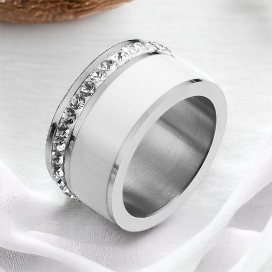 Milla kristály köves EZÜST-FEHÉR kerámia gyűrű