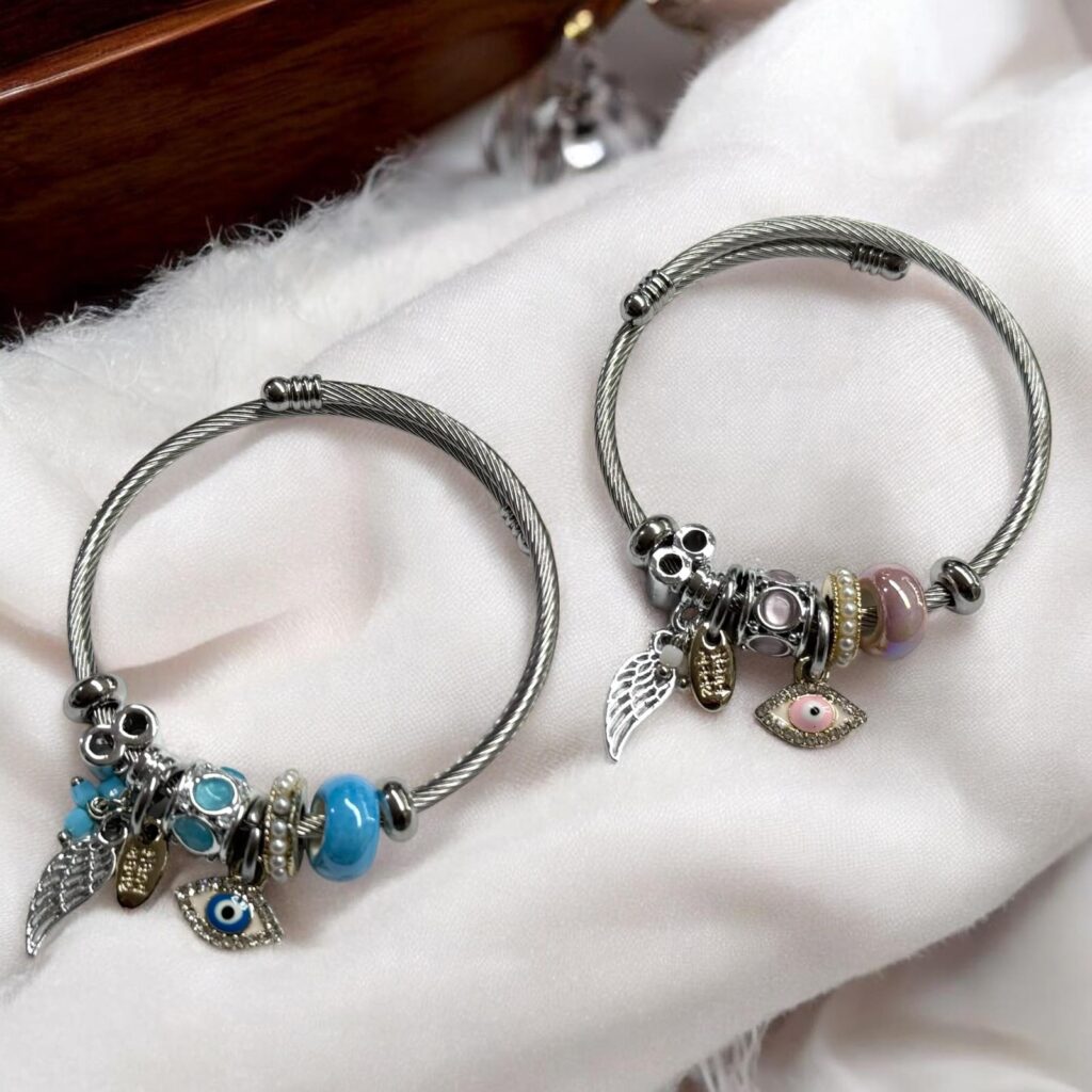 Panna rózsaszín színű nemesacél karkötő